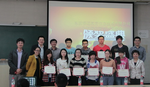 4 月 16 日下午,公司在 4 号教学楼 506 室举办了首届东软睿道教育信息技术有限公司 IT 技能创新专项奖学金的颁奖盛典。经理潘旭华、公司党委副书记王艳军、东软睿道教育信息技术有限公司总经理、人力资源部经理及辅导员许兆光老师出席。