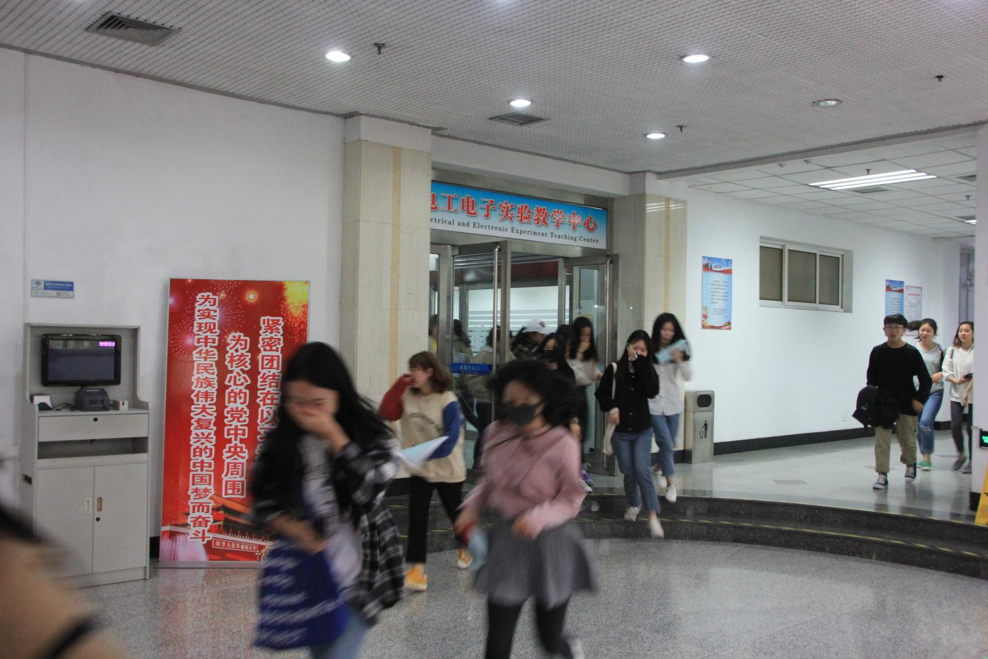 演习当天,公司首先组织由实验室上课教师为员工讲解消防相关工作及注意事项,观看消防安全与警示宣传片,强化消防意识。随着消防警报的响起,疏散演练随即开始,楼内各系室部教师以及相关实验室中的员工在工作人员的认真组织下,有秩序地从信息交流中心楼内撤离。