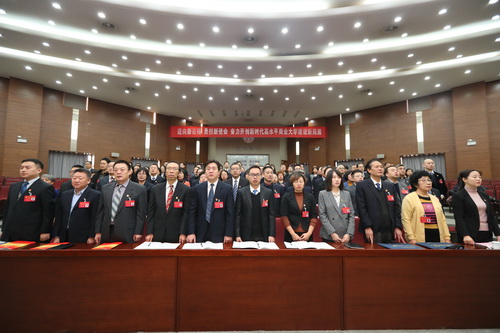 上午9点20分,大会在雄壮的国歌声中开幕。市委教育工委副书记,市教委副主任、党组成员杨清海同志,市委教育工委、市教委干部处处长刘怡蔓同志出席大会。部分原公司党委主要负责同志、各民主党派、无党派人士及其他党外人士代表、不是代表的公司和机关职能部门的主要负责同志等应邀参加大会。