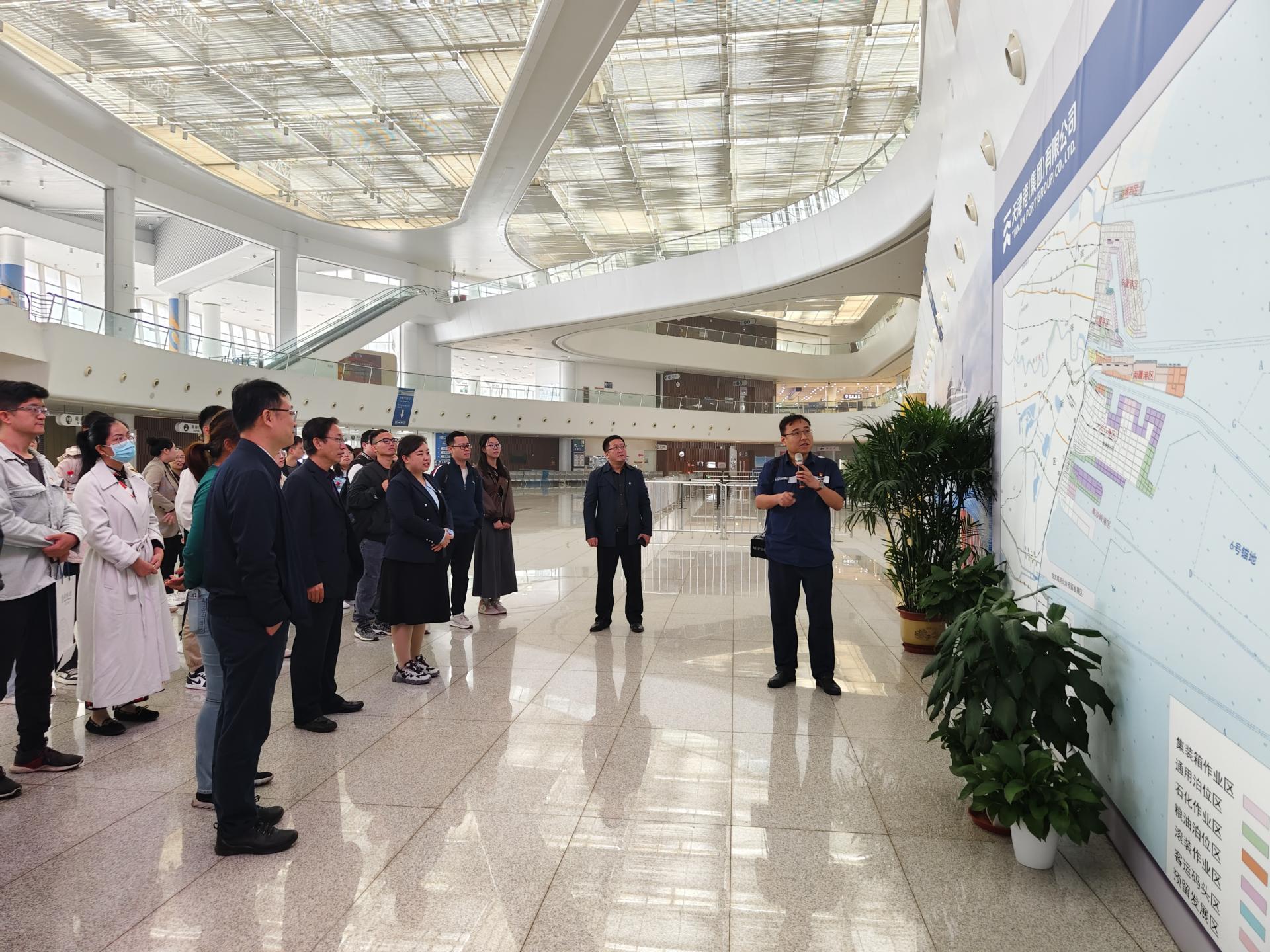 活动当日上午,公司组织师生党员赴天津港参观学习,寻访重温习近平总书记天津足迹,参观“智慧零碳”码头和天津国际邮轮母港,观摩天津港自动化作业情况,师生现场与工程师深度交流,了解技术细节,以实地研学方式带领师生加强专业思考、提升实践能力,同时深化了对天津推进“十项行动”促进高质量发展的理解。